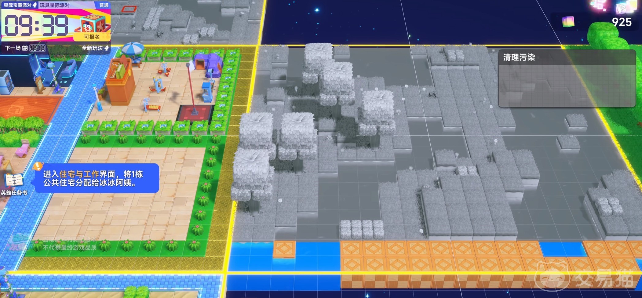 星球的六面体形态不仅具备视觉辨识度,更承载差异化功能设计。玩家可通过飞行器或筋斗云在各面之间自由穿梭,但登陆点仅限于已完成污染清理的区域,强化了“先治理、后开发”的玩法逻辑。随机降落机制也增加了探索的不确定性与重复游玩价值。