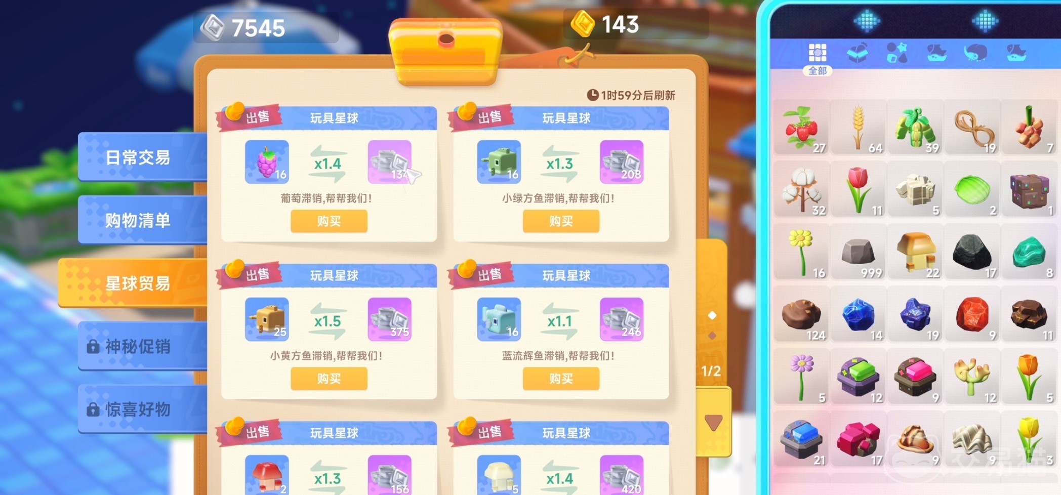 除交易功能外,杂货店还是获取关键成长物资的核心渠道。种子、家具等建造必需品在此持续上架,且不同星球的杂货店定价存在差异。玩家可通过比价策略,在价格处于低位时批量储备种子类道具,降低长期种植成本。此外,每日刷新的【神秘促销】与【神秘好礼】板块,提供限时折扣与随机奖励,建议养成每日上线后第一时间刷新的习惯,把握额外资源获取机会。