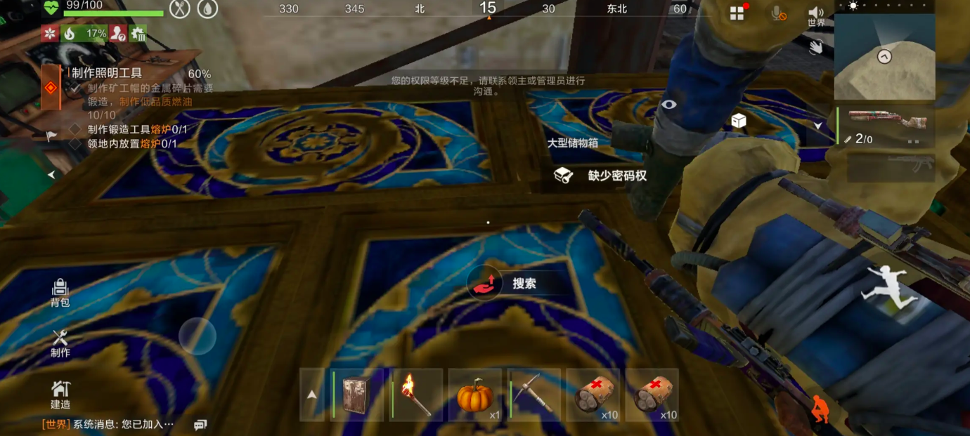 武器系统覆盖石器时代至现代制式装备,共设47种可装配载具。其中部分枪械需先获取对应图纸,再收集指定材料,在制作台完成组装后方可解锁使用,强调资源规划与技术演进路径。