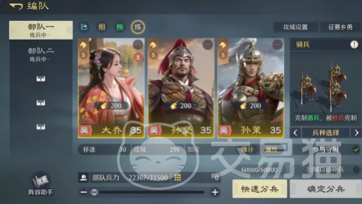 开荒期阵容搭配需聚焦减伤与续航能力。主将宜选择具备全队增益效果的武将,例如蔡文姬(降低部队损耗)或大乔(提供治疗)。推荐组合为孙坚、孙策、大乔:孙坚承担前排承伤,孙策施加控制并触发伤害倒戈,大乔持续恢复兵力,三者协同可实现低损耗扫荡地块。若暂未获得大乔,签到赠送的蔡文姬可无缝替代,同样能支撑高效率开荒节奏。