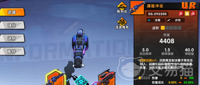 冰霜系角色主力输出推荐步枪【源能冲击】。该武器定位为主武器,拥有高频射击节奏,支持稳定远程冰霜弹幕压制。对单目标可触发79%基础攻击的冰霜伤害;元素充能完成后,通过印记机制进一步提升75%冰霜属性增益。该增幅幅度在步枪类元素武器中属于高水准表现,兼顾持续输出与元素覆盖率。