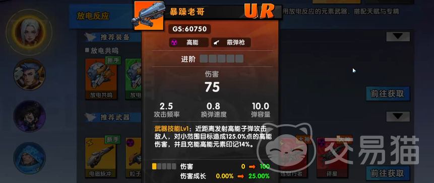 近战场景下,霰弹枪【暴躁老哥】为优选方案。其高能子弹可在近距离范围内对多个目标同时施加125%基础攻击的伤害。尽管该数值高于多数远程武器,但受限于霰弹枪固有基础数值偏低特性,当前版本中更常作为副武器补充使用。完成充能后,可激活14%元素印记加成,显著改善近身作战的瞬时杀伤力与容错率。