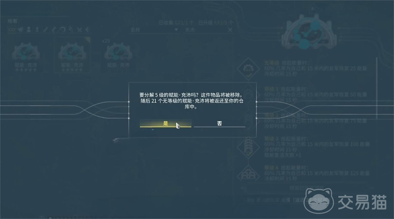 当前游戏中共存在八类赋能类型,每件战甲或武器在满足条件后均可解锁专属赋能槽位。其中,战甲初始即开放两个赋能槽,且整体赋能获取渠道最为丰富——衰退实验室与深层科研任务均为高概率产出来源,是玩家持续强化战力的关键资源节点。