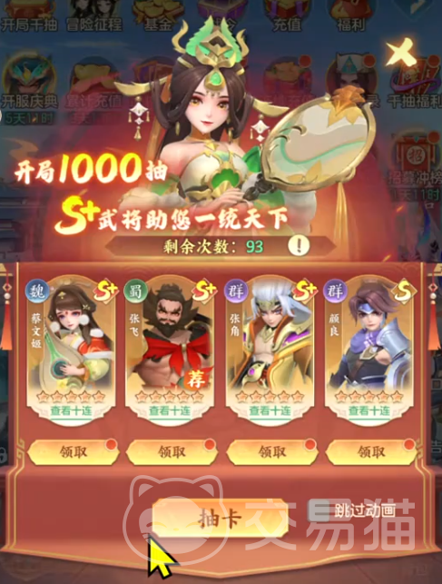 第二轮自选于完成累计1000次抽卡后触发,系统将推送S+级武将池,涵盖张角、张飞、蔡文姬等高适配性角色。此类武将具备机制压制力与队伍增益双重价值,在PVE推图与PVP对抗中表现突出。推荐策略为:优先锁定与主养阵营一致的S+角色,例如蜀国队搭配张飞,群雄队搭配张角,以最大化阵营专属加成收益。