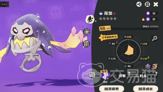 完成常规进化后,玩家还可挑战更高阶形态——噩梦夜枭。该形态仅在黑水崖区域夜间时段(游戏内时间20:00–5:59)随机刷新,外观呈深紫渐变色,属性栏明确标注为“幽灵+技术”,所有技能基础威力提升12%,且附带5%命中率强化效果。捕捉方式与空空颅一致,需控制血量至濒危状态后使用高级精灵球(推荐使用大师球或超能球)进行收服。