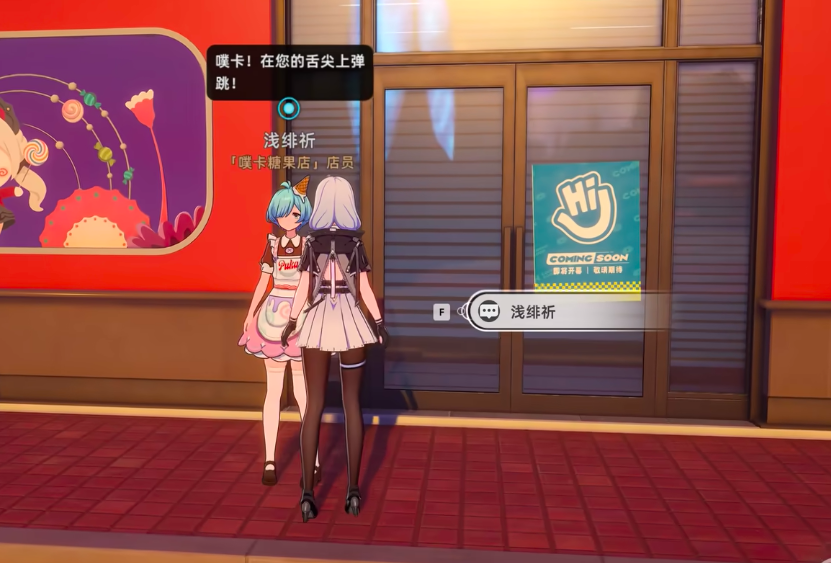 沿路径穿越花园与中央广场,抵达噗卡糖果屋后,与店员浅绯祈对话,获取第一条摇滚乐音频线索。随后依指引前往白鲸书店,与图书管理员迪兰互动,获得第二条线索;再转至9℃咖啡厅,和服务员瑰夏完成对话,收集第三条线索。三段信息拼合后,声源定位将自动更新至总部建筑二层。