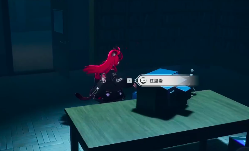 沿主干道转向街角后,将进入“维特海默值异常波动区”。此处分布多台小型电视机设备,环境光线明显减弱,场景切换为老旧教学楼内部走廊。沿楼梯向上行进时,可继续依赖蓝色光斑导航。抵达二楼后,注意两侧靠墙摆放的若干储物柜,每个柜顶均置有花盆。需逐一交互翻查全部花盆,最终可在其中一只内获得关键道具——“闪闪发光的小钥匙”。