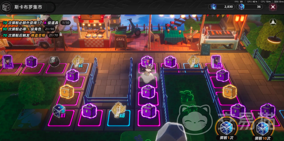 在角色获取机制上,《异环》摒弃传统转盘式抽卡逻辑,采用类“策略掷骰”设计:玩家投掷虚拟智骰后,根据落点位置领取对应奖励;其中橙色宝箱为专属S级角色抽取入口,概率公示透明,大幅降低非目标角色获取偏差率。