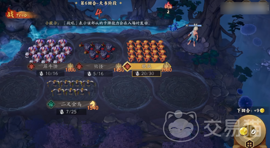 进入战局中期后,应将资源倾斜至【鸟妖】的获取。该卡不仅提供稳定的续航能力,保障主力单位生存时长;同时作为女妖身份,同样可激活一名妖族骑兵。只要整体妖族阵容结构未出现严重断层,该骑兵往往能全程参战,持续强化天魔类单位的输出强度。