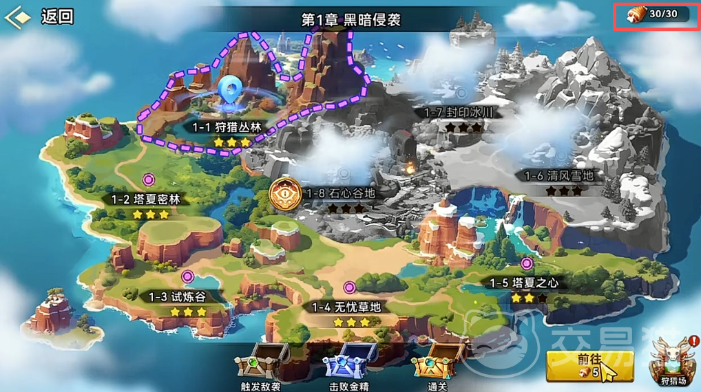 击败普通敌人有概率掉落血瓶,拾取后立即恢复一定生命值,此设定有效降低Roguelike玩法中的容错压力。屏幕顶部显示经验进度条,直观反映单局成长进度。前期流程以主线推进为主,难度平滑可控。完成教学后将解锁“狩猎场”功能,该系统支持离线挂机——选择已拥有的角色入驻后,可持续产出金币、经验、圣水及基础装备等奖励,是新手期资源积累的重要补充渠道。