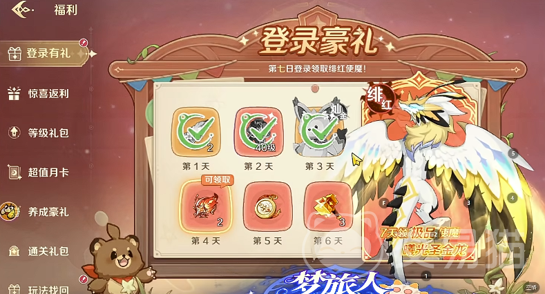 角色达49级后将解锁觉醒系统,开启全新技能树与战力跃升通道。新手福利体系覆盖全程:连续登录7日即可领取全套成长资源,包括首日使魔召唤材料、次日红品装备、灿金使魔,以及第七日直接发放的绯红等阶使魔,均为不可跳过的关键战力支撑。