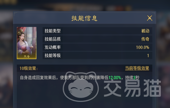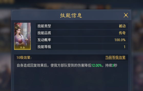 其主将技为扇形谋略伤害,对男性目标存在固定比例的额外伤害加成,这一设定使其在面对以男性武将为核心的敌方阵容时具备天然克制优势。被动技能采用双轨触发模型:一方面,当己方单位累计承受指定次数的普攻后,可恢复一定兵力;另一方面,自身每完成指定次数的普攻,将额外附加一次武力伤害。值得注意的是,若己方主将为男性,上述两项效果均会获得进一步强化——该机制使貂蝉既能嵌入高爆发连击流,亦可支撑持久作战型队伍,实现输出与续航能力的动态平衡。