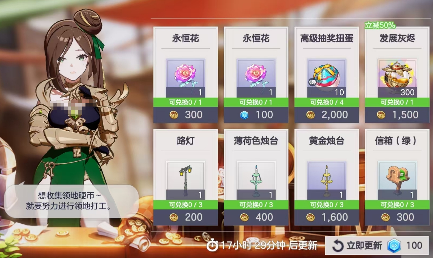 完成猎场清剿与精灵打工均可获得领地硬币。该货币具有双重用途:一是用于领地扩容,二是兑换领地商店内限定道具。推荐兑换优先级为:永恒花(直接提升精灵好感度)>扭蛋球(概率获取好感相关道具)>发展灰烬(提升领地发展度)>其他建筑图纸或功能道具。合理规划兑换顺序,可显著加快角色关系培养进度。