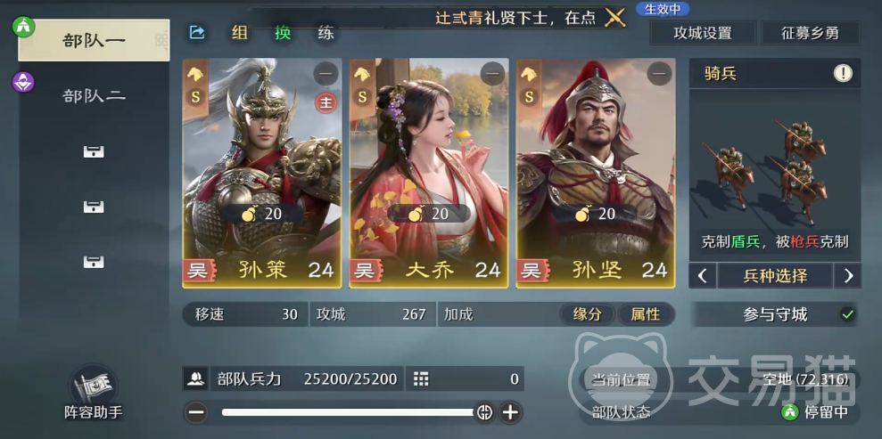 辅助位首选貂蝉,其技能机制可同步提供增伤加成与攻击频率支持,完美契合连击流节奏。战法配置上,“诸葛弩”用于提升基础普攻触发概率,配合“锋”进一步放大连击伤害;若追求团队协同效率,“全军出击”亦可作为替代选项,强化三名武将间的行动衔接与节奏统一性。