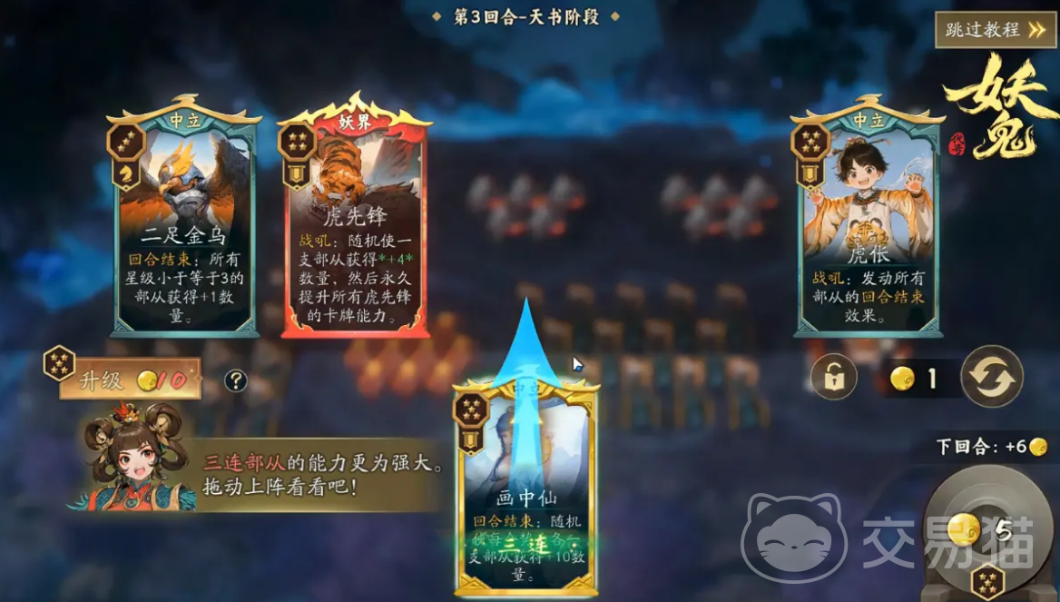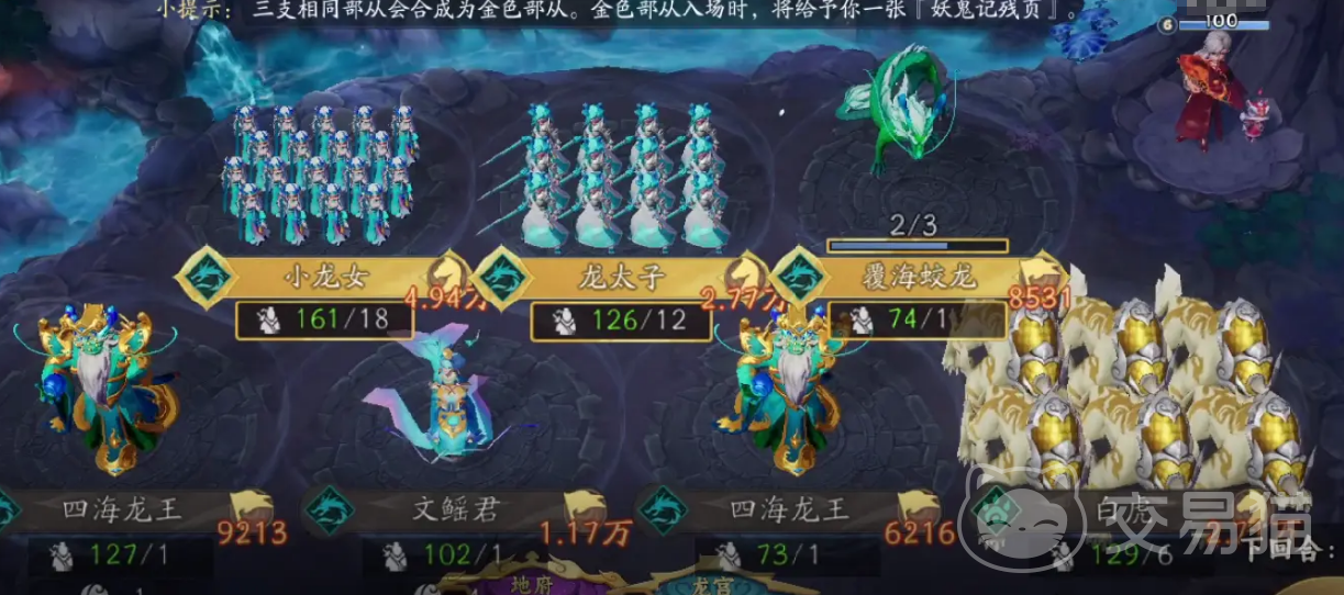 进入第二至第三回合的中期发育期,应集中资源招募龙太子,并同步保留小龙女作为功能型备选单位。经济类卡牌按需购置,避免过度消耗手牌空间,暂不急于提升星级等级。协同体系方面,推荐引入四海龙王,使其“回合结束”效果触发次数翻倍,从而显著加快前期兵力铺场与场面控制速度。