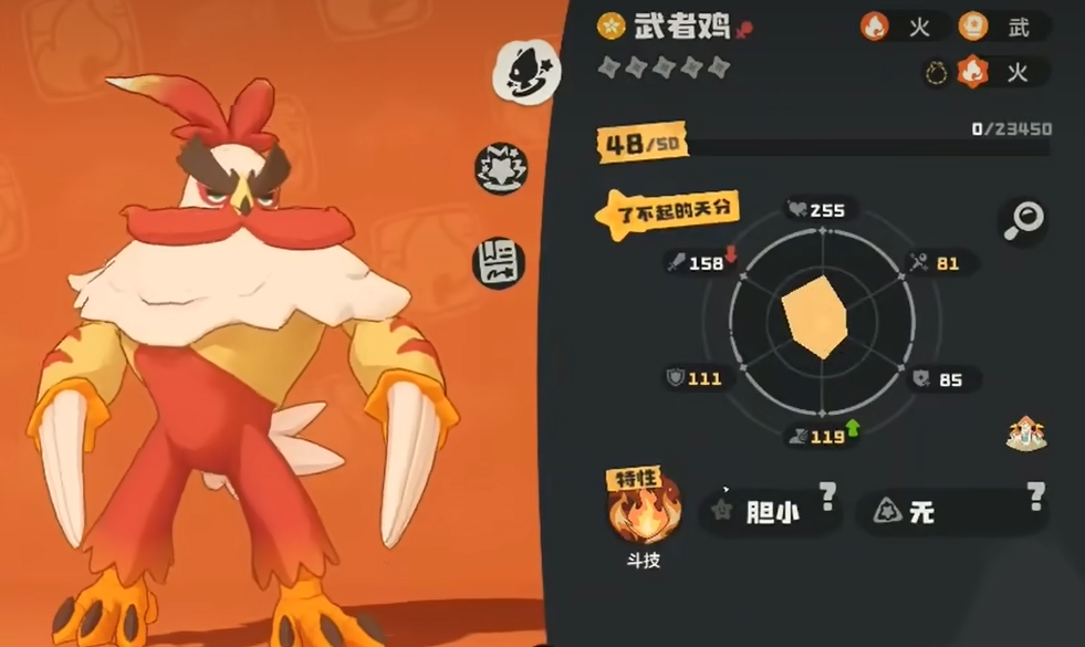 需特别注意的是,武者鸡对水系与超能系攻击存在双倍克制关系,遭遇对应属性对手时需谨慎应对。建议队伍中携带一只草系宠物作为对策手段,既可反制水系威胁,又能补充自然系战术维度,从而构建更具泛用性的阵容体系。整套进化流程门槛清晰、操作简洁,仅需牢记“36级+单场五次缠绕丝”即可达成,是性价比极高的成长路径之一。进化完成后,武者鸡在火系物攻宠梯队中处于一线水准,综合表现突出。