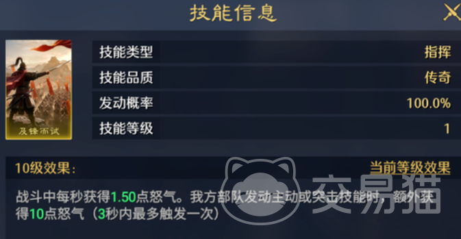 孙权的主将技为智力加成型范围谋略伤害,具备三重功能性:一是对敌方全体造成高额AOE输出;二是开局即驱散我方全体负面状态;三是入战时自动获得固定数值怒气,显著缩短首技释放时间。其固有技则兼顾输出与团队增益——对单体目标施加谋略伤害的同时,为全队提供持续数秒的统率、武力、智力三围属性提升。综合来看,孙权并非传统站桩输出将,而是以高频技能循环为核心的节奏型主将,依赖怒气管理与辅助协同实现持续压制。
