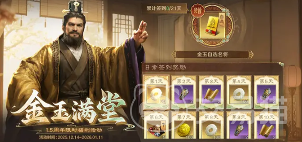 此外,周年庆期间同步开启特别签到机制。玩家每日登录即可领取对应物资,连续签到满21天后,将解锁终极奖励——自选名将资格,助力阵容构建更具策略弹性。