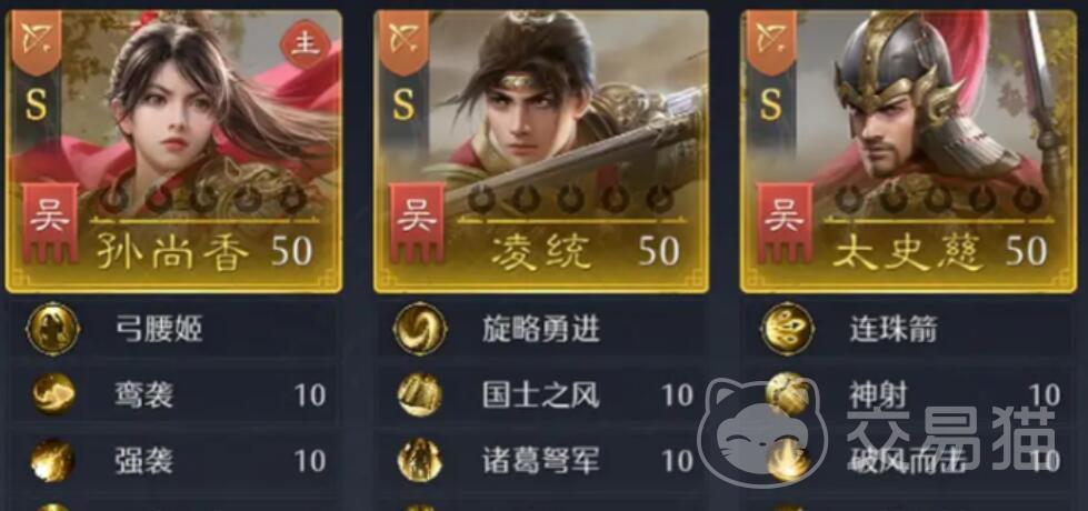 此阵容中,孙尚香担任主将,优先携带主动类异常战法,确保增益覆盖率;太史慈作为副将,推荐配置具备异常追加效果的战法,强化孙尚香输出环境;凌统同为副将,侧重辅助向战法选择,可依据战局需求切换增益或减益类技能。兵种方面,默认推荐诸葛弩军;若遭遇敌方异常单位密集的阵容,则切换为红绫军,以增强主动战法的爆发强度与响应速度。