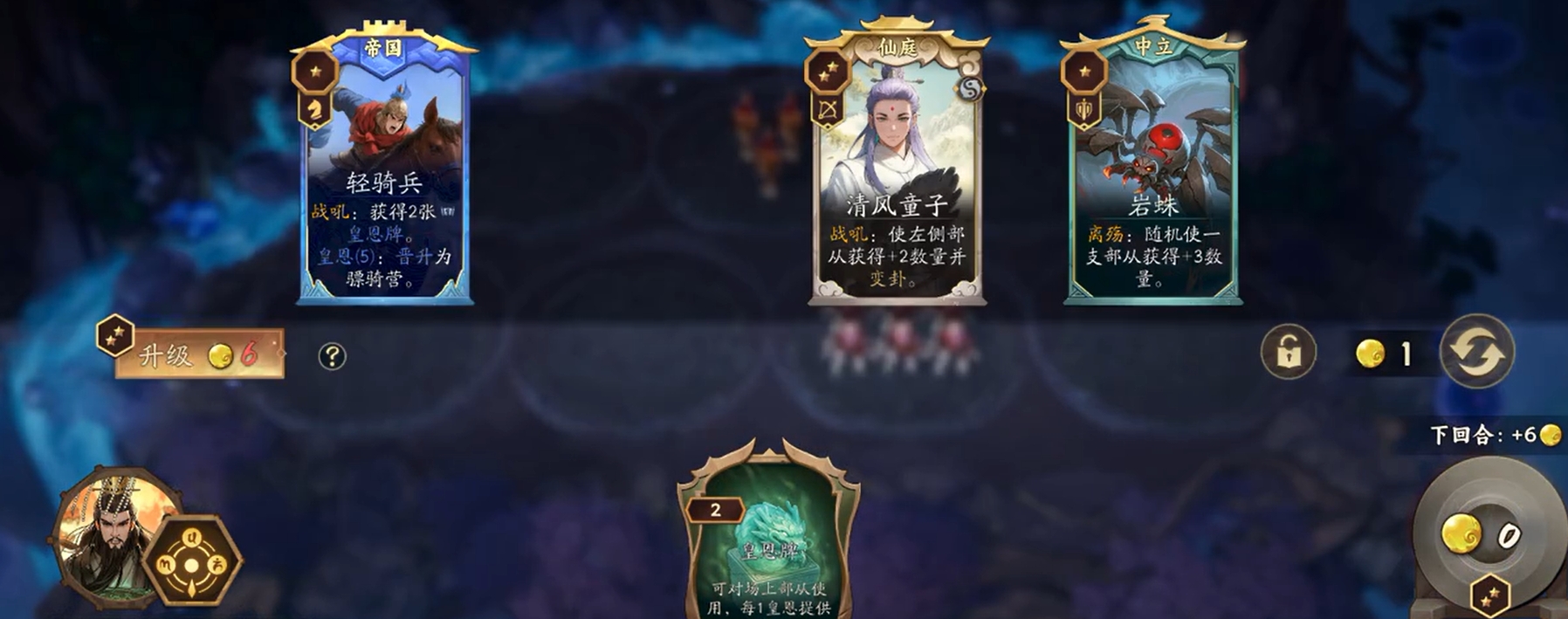 灵石是贯穿整局对战的核心经济资源。最基础的使用场景包括:购入部从——所有部从单价恒定为3灵石;出售部从——无论星级高低,一律返还1灵石;刷新天书——每次操作固定消耗1灵石。这三类行为共同构成游戏底层经济循环。每回合系统自动发放灵石,初始数量随回合递增,上限锁定为10灵石,确保中后期拥有更充裕的操作空间。