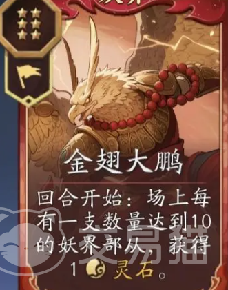 该体系以黄风怪为战术支点:其战吼效果可刷新天书并锁定妖族卡组,是整套运转的启动器;开局建议保留一张用于持续检索体系内关键组件,其余同名卡可果断替换以优化手牌资源。金翅大鹏承担经济引擎职能——每回合开始时,依据场上数量提供固定灵石,构成中后期稳定运转的基础保障。青毛狮王则作为功能性枢纽,赋予全体妖族单位战后技能加成,兼具泛用性与成长性,是阵容成型过程中的核心支撑点。