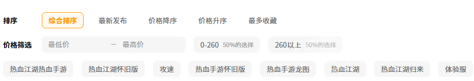 考虑到一些买家需求,小伙伴们在寻找游戏账号的时候,是可以根据具体的一些选项进行分类检索的,比如账号价格,以及一些游戏内的具体资源情况,这样就能让大家确保都是在满足个人条件的状况下去寻找心仪的账号。