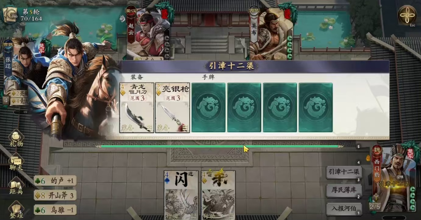 终极大招【入报河伯】为限定技,发动后将场上所有角色手牌、装备区及弃牌堆中的黑桃牌全部洗回牌堆。此技能并非孤立存在,而是与【引漳十二渠】深度绑定:前期通过交付黑桃建立资源流转,后期借限定技回收散落黑桃,重置关键牌序,大幅提升后续回合的技能启动频率与稳定性。三技能之间逻辑严密、互为支撑,构成完整闭环体系。