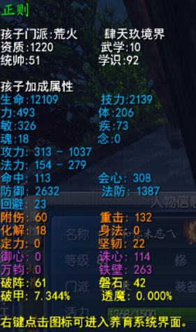 孩子培养环节同样影响战力成型效率。武器推荐四星太初,属性倾向双体、诛心与会心三类;点化方案建议储备多套配置,包括双破甲、双明慧、双诛心等组合,依据实际战斗需求(如破防压力、技能冷却管理、会心率补足)进行动态切换。