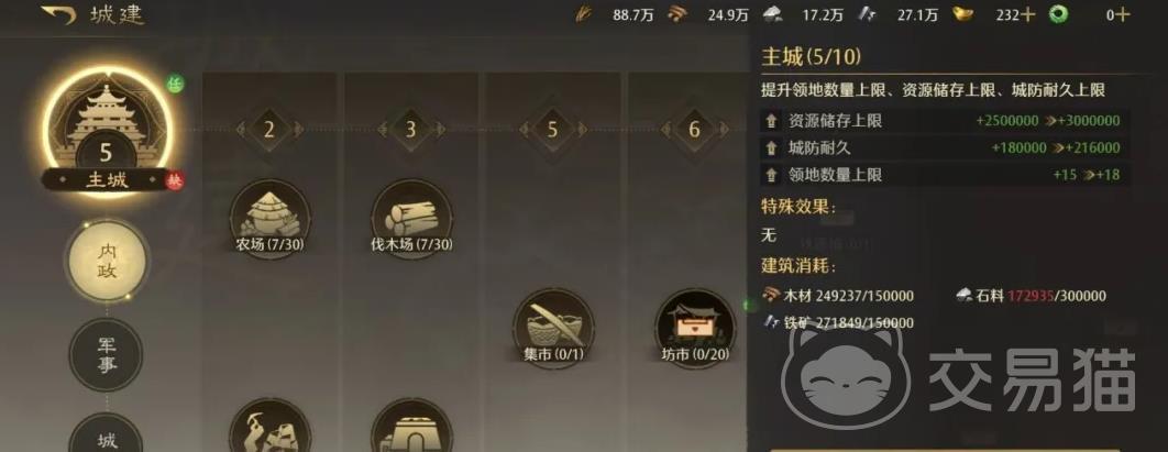 资源规划是前期成败的关键。不少玩家急于拓展功能建筑,忽视主城等级的核心地位。需明确:主城升至5级前,应集中投入木材与石材,暂缓其他区域建设;主城达5级后,再按需开启兵营、校场、粮仓等模块。切忌过早分散资源,否则将拖慢整体发展效率,直接影响后续武将招募、部队编制与战役参与能力。