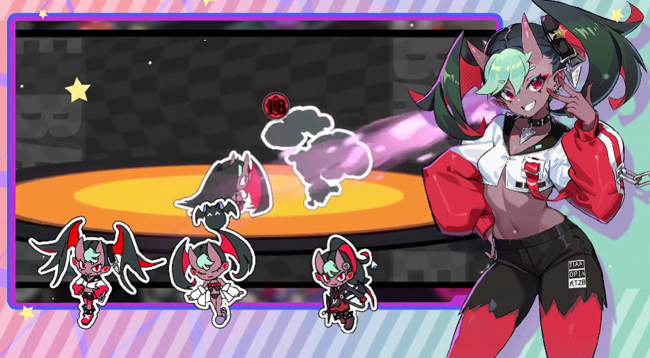 猩红辣妹·帕帕拉属于单体强攻型角色,隶属猩红行者乐队并兼任地下飙车集团主理人。外观以红色涂装与趣味贴纸为标志性特征。主动技能对单一目标造成高额物理伤害,并附加持续流血效果;被动技能在完成一次位移后,下一次普攻命中率获得显著提升,强化其机动打击能力。