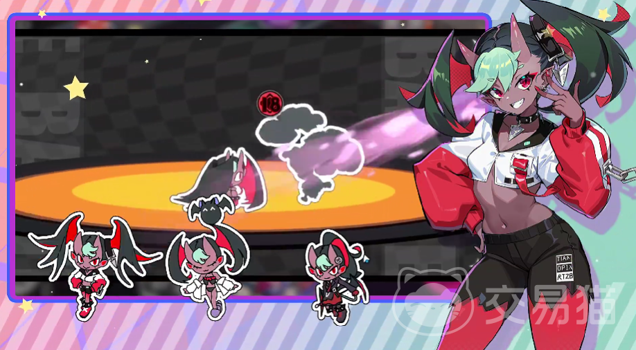 午夜闪光·星魅琉华定位为高爆发物理输出角色。其背景设定融合调酒师与地下飙车领袖双重身份。主动技能可显著提升自身攻击力,并附带暴击率加成;被动技能在生命值低于一定阈值时自动激活,大幅提升闪避成功率,同时切换为队伍核心输出位(主C),实现残血反杀与战局逆转。