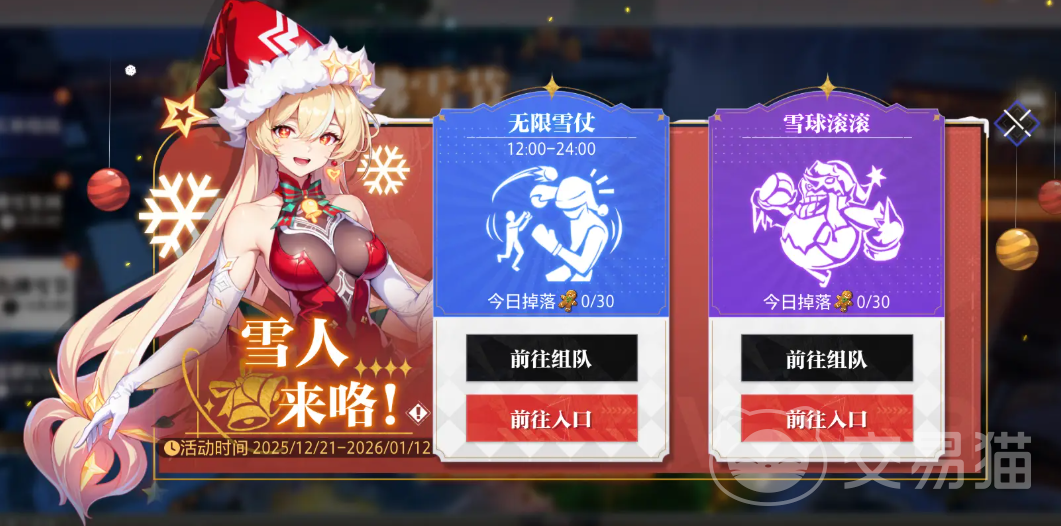 偏好PVP对抗的玩家可重点关注“雪人来咯”与“超级圆滚滚”双玩法。前者提供4v4雪仗对战模式,后者则为挑战型副本,目标为击败雪霸弗莱斯。成功参与均可获取姜饼人货币,用于拂雪集市内定向兑换;日常消耗能量还可获得“絮絮雪”,在莱茵城广场堆砌雪人,随进度推进逐步解锁圣嘉赞歌、晶珀等进阶奖励。