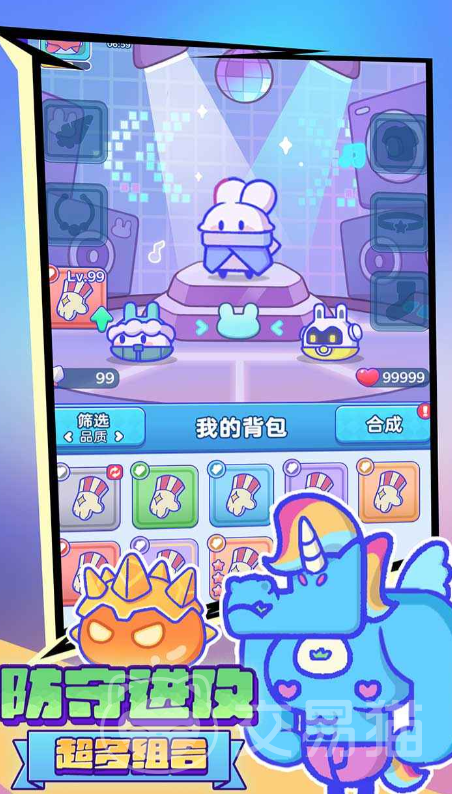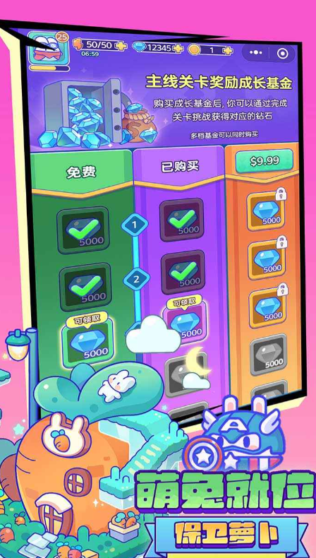 游戏中构建了一个由多只拟人化萌兔组成的战斗阵营,每位角色均具备差异化技能设定。例如掌握冰系法术、可发射冰晶造成范围减速与伤害的艾莎兔;或拥有时间干预能力、能显著延缓敌方移动速度的哈利波特兔。玩家需依据战场局势,动态调用不同兔子的专属技能,实现高效清怪、连击压制与战术协同,最终组建一支高适配性的兔系防御力量,完成对家园领地的稳固守护。