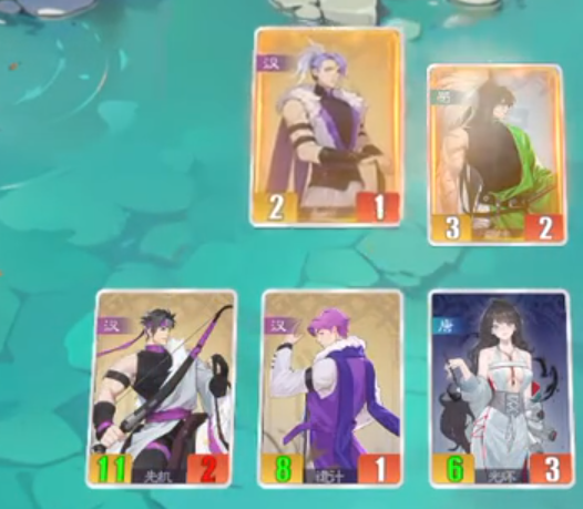 汉阵营定位均衡,中期战力峰值突出。核心依赖王昭君与李广两位四费角色,二者共同构成输出与控制双轴。在此基础上,需适时补充六费卡卫子夫与霍去病以完善上限,但获取压力相对可控。阵容强度高度绑定前排双核的及时到位。