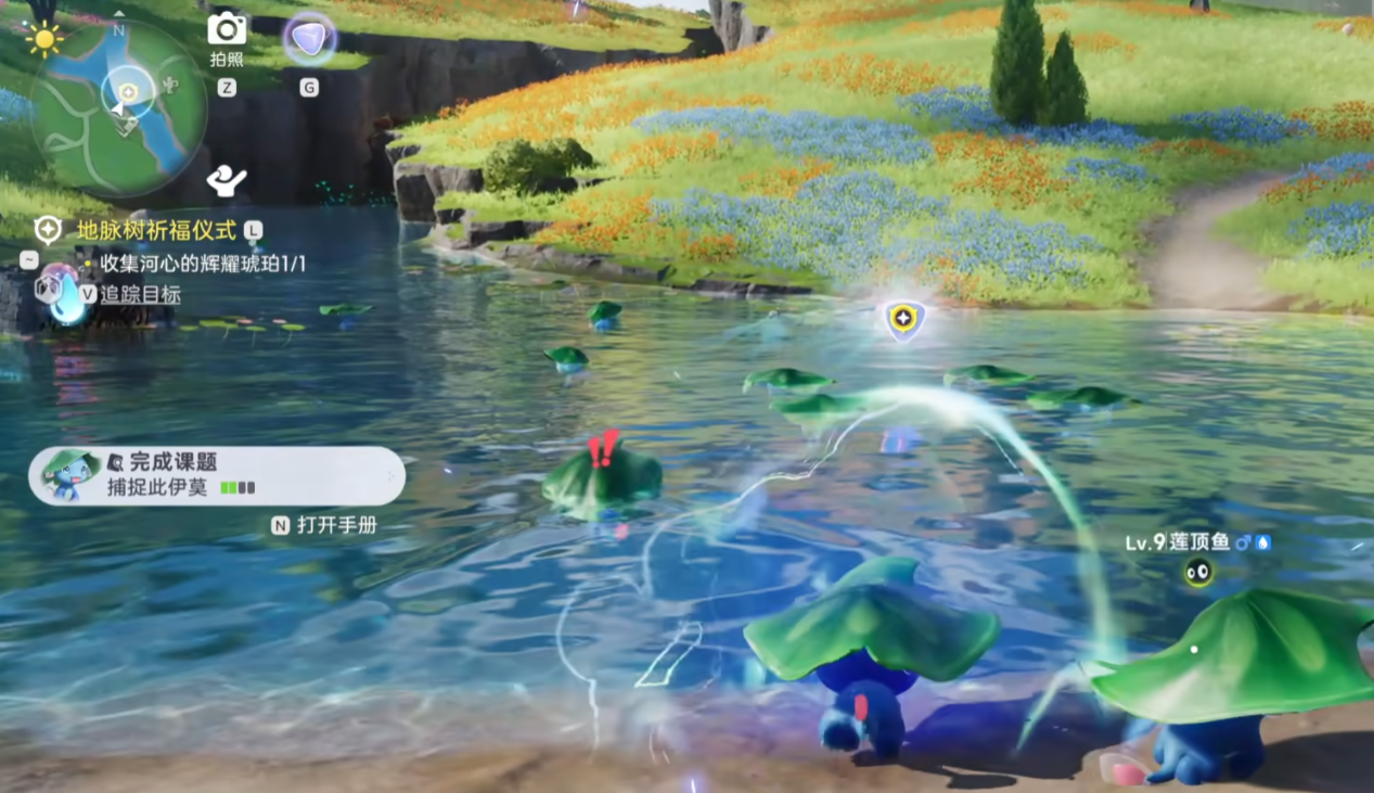 解锁伪装功能需前置积累:通过完成主线及支线委托,逐步捕获具备特定生态特征的伊莫个体。以“地脉树祈福仪式”任务为例,玩家需抵达湖泊中央采集河心——该区域常态刷新高密度敌对单位,常规移动极易触发围攻。此时启用已捕获的莲顶鱼进行伪装,可激活其原生水下缓速游动特性,在不惊扰周边生态的前提下稳定接近目标点。