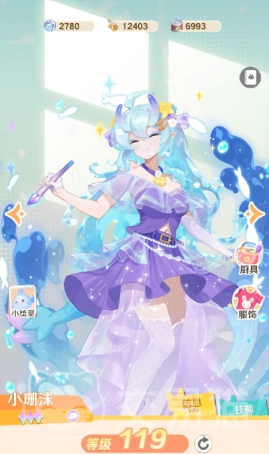龙族出身的少女小珊沫,外表温婉却思维灵动,常以轻松幽默的方式活跃团队氛围。其核心能力聚焦于厨艺体系:制餐过程中同步提升自身与全体店员的厨艺值;在沙盘推演中,可使派驻店员厨艺提升6.5%;经营状态下直接带动客流量增长13%;参与“超级厨王秀”时,还能为悠云特质店员额外提供27%厨艺加成。