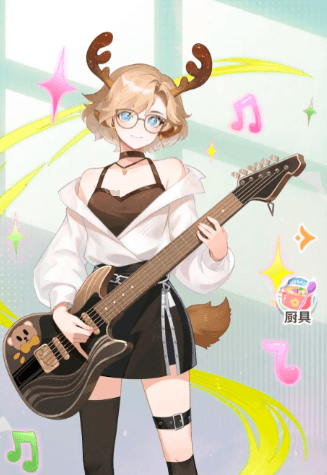吉他手陆展现出鲜明的双面特质:台下安静内敛,台上气场全开。她以音乐感染力转化为实际收益助力:完成“日常聚会”后,所获嘻币提升6.5%;制餐环节中,显著提高全体店员厨艺值,是前期快速提升出餐品质的关键辅助角色。