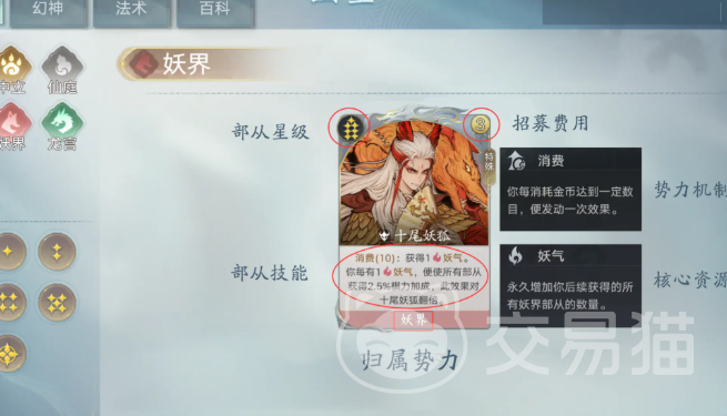 依据实战定位与机制逻辑,中等幻神可划分为三类:泛用过渡型、阵营协同型与战术功能型。泛用过渡型代表——十尾,不依赖特定阵营即可部署,其核心技能可在触发后为全体己方单位提供持续属性增益。无论用于前期速组成型阵容,还是中期多体系混搭场景,均能即插即用、快速生效。值得注意的是,十尾与妖界“妖气”资源存在隐性联动机制:当队伍中配置狐媚、妖狐等具备妖气生成能力的妖族单位时,可显著延长十尾技能的持续时间,从而强化战斗续航能力。