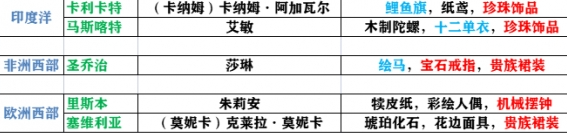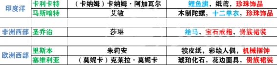 东南亚与印度洋沿岸角色偏好更具地域特色的精致物件。马六甲的拉蒂雅倾向机械摆钟与首饰盒,前者需通过隐藏物品系统解锁,后者可在西兰港口购买;卡利卡特的卡纳姆喜爱纸鸢、珍珠装饰品及鲤鱼旗;马斯卡特的艾敏则偏好木质陀螺与珍珠装饰品——该类饰品可在圣多明各港口的隐藏商店直接获取;圣乔治的莎琳向往贵族气质,接受贵族裙装、绘马及宝石戒指;里斯本的朱利安偏爱彩绘人偶与机械摆钟;马赛的卡米尔则对高级餐具与清华鸟食罐情有独钟。