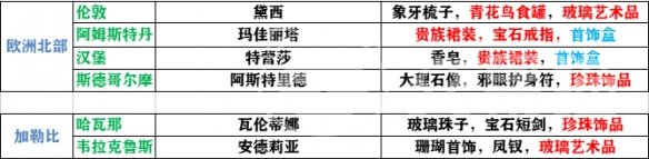 欧洲北部与加勒比地区角色的喜好亦具鲜明个性。伦敦的黛西喜爱玻璃艺术品、青花鸟食罐及象牙梳子;阿姆斯特丹的玛加丽塔倾向宝石戒指、首饰盒与贵族裙装;哈瓦那的瓦伦缇娜偏好玻璃珠子、珍珠装饰品及宝石短剑;维拉克鲁斯的安德莉亚则钟情玻璃艺术品、凤钗与珊瑚首饰。值得注意的是,所有角色好感度提升均以赠送契合礼物为核心机制,此为不可替代的关键路径。