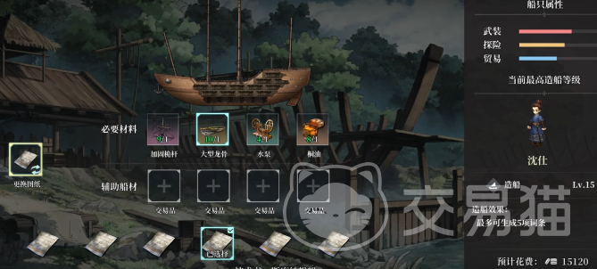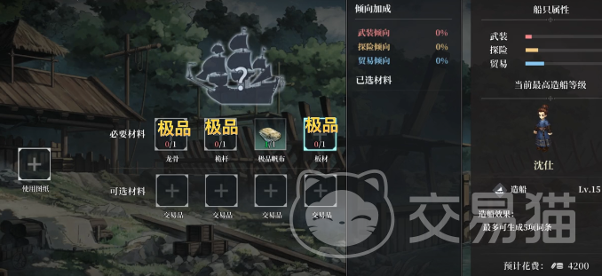 造船过程中存在“船型偏移”机制:即便使用福船图纸,仍可能随机生成开浪船或哨船等其他船体类型。该结果由随机算法决定,无法直接干预;但通过精准配置船材组合,可有效收束结果范围,提升目标船型产出稳定性。值得注意的是,白板船与自定义造船在基础属性层面完全一致,差异仅体现在词条生成环节——这也意味着材料品质对最终词条质量具有决定性影响。