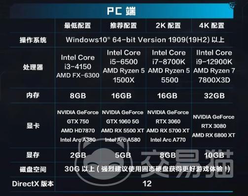 PC平台的内存需求与显示输出规格密切相关:基础1080P画质下,8GB为最低门槛;若选择2K分辨率,推荐16GB运行内存;追求4K超高清视觉表现,则需至少32GB,并搭配性能达标的独立显卡,确保渲染流畅无卡顿。
