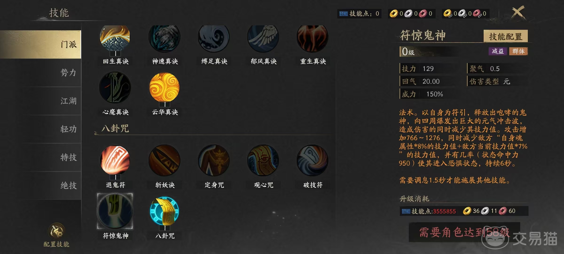 技能架构上,太虚观划分为三大专精方向:通灵术、云华真诀与八卦咒。通灵术以召唤为核心,涵盖玄龟真言(提供护盾与减伤)、白虎真言(强化物理压制)、丹鹤真言(施加持续伤害与减速)等分支,对应不同灵兽单位,形成差异化战术组合。云华真诀侧重辅助增益,如回生真诀(群体治疗)、神算真诀(提升命中与会心)、重生真诀(短暂无敌)及心魔真诀(干扰敌方技能释放),显著增强队伍持续作战能力。八卦咒则专注爆发输出,代表技能“符惊鬼神”可对周身大范围目标造成高额法术冲击,是清场与反打的关键手段。所有技能随角色等级逐步解锁,但受制于冷却机制,需依据战场形势动态搭配使用。