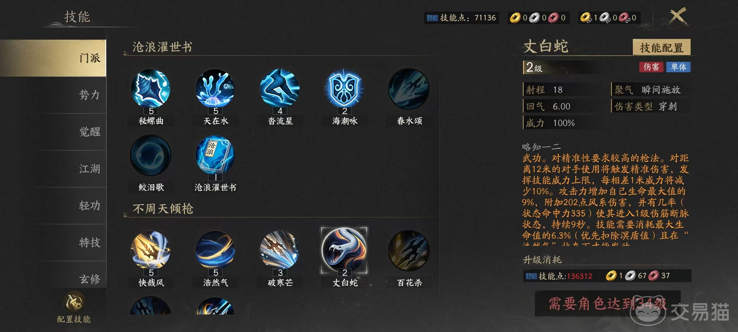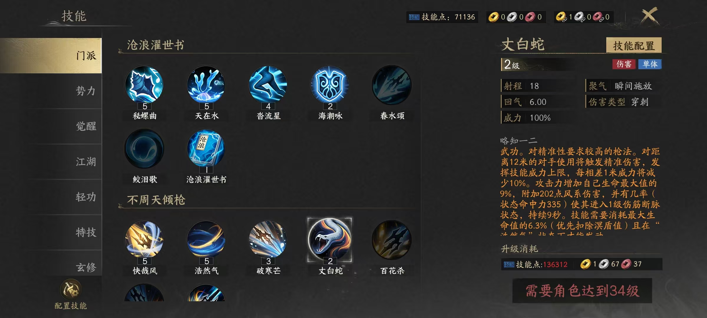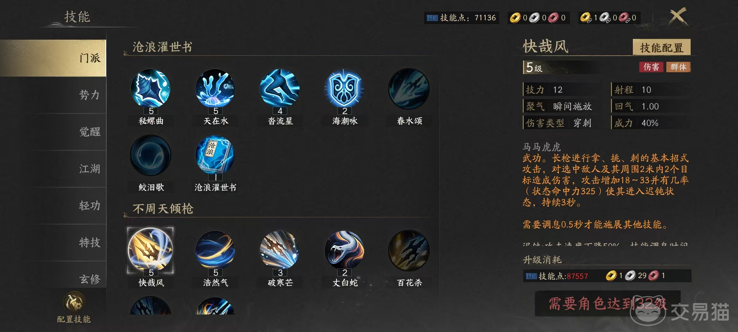 核心技能体系围绕“位移—距离—破防—控场”四重逻辑构建。首推技能“沓流星”,具备多段定向突进能力,不仅可用于主动切入或战术撤退,更能即时清除定身、缓速等负面状态,是整套连招链的启动枢纽与容错保障。第二技能“丈白蛇”为中距离核心输出技,伤害随敌我间距动态变化,同时附带破甲与生命值转化攻击力效果,对距离预判要求极高。第三技能“浩然气”属物理系心法,依据力属性数值线性提升物理攻击强度。第四技能“百花杀”融合近身强攻与硬控于一体,命中后可有效限制目标行动。第五技能“快哉风”为基础物理伤害技,命中时附加迟钝效果,是衔接控制与续伤的重要过渡技能。