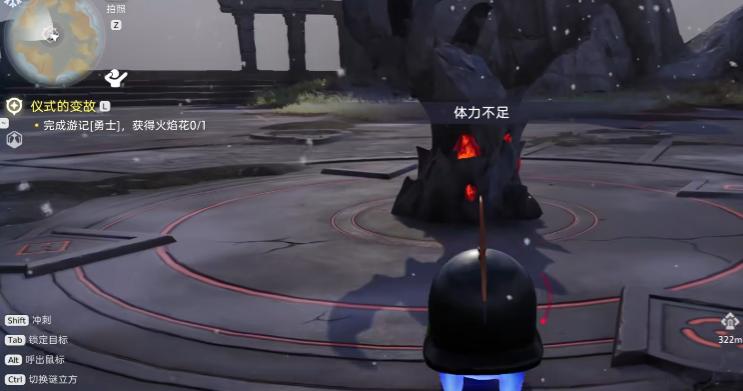 进入遗迹核心区域后,中央可见一块半掩于岩层中的赤色物体,表面泛有微弱红光。需使用角色跳跃接重击的方式击碎外层石壳,使勇气之剑部分显露。此时系统提示:需穿越风暴抵达丹岩高地之巅,但现场未见炎铠龙踪影,唯余此剑矗立,靠近时将触发意志判定机制。