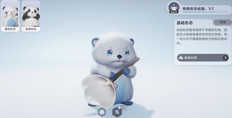 日常活动中,羞羞獭有挖掘土壤寻找求偶信物的行为倾向,但因过度紧张屡次告白失败。其标志性动作是用前肢反复揉搓脸颊,这一细节强化了角色性格记忆点。该伊莫存在两种形态:常规日间形态与夜间专属形态。