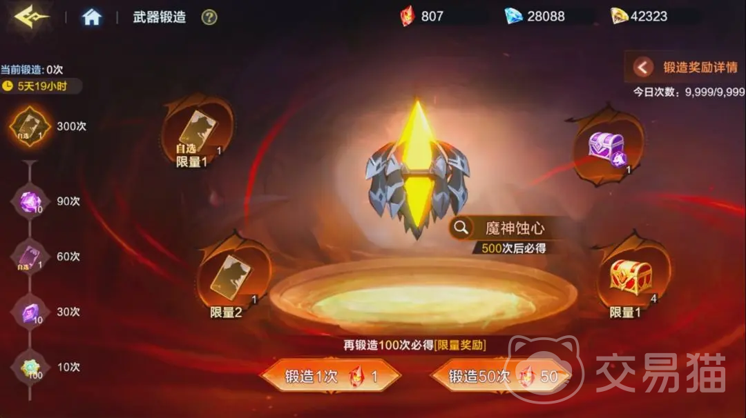 获取途径方面,金色品质专武需通过商城【专属武器】界面抽取,支持设置本职业金色专武为心愿目标;单次抽取消耗50蓝钻,综合获取概率为1.8%,每次抽取均有概率获得专武升级所需材料。红色品质专武则限定于限时活动【神兵锻炉】中产出,需消耗魔炎晶石进行抽取,该活动同步提供稀有资源及高价值道具奖励。