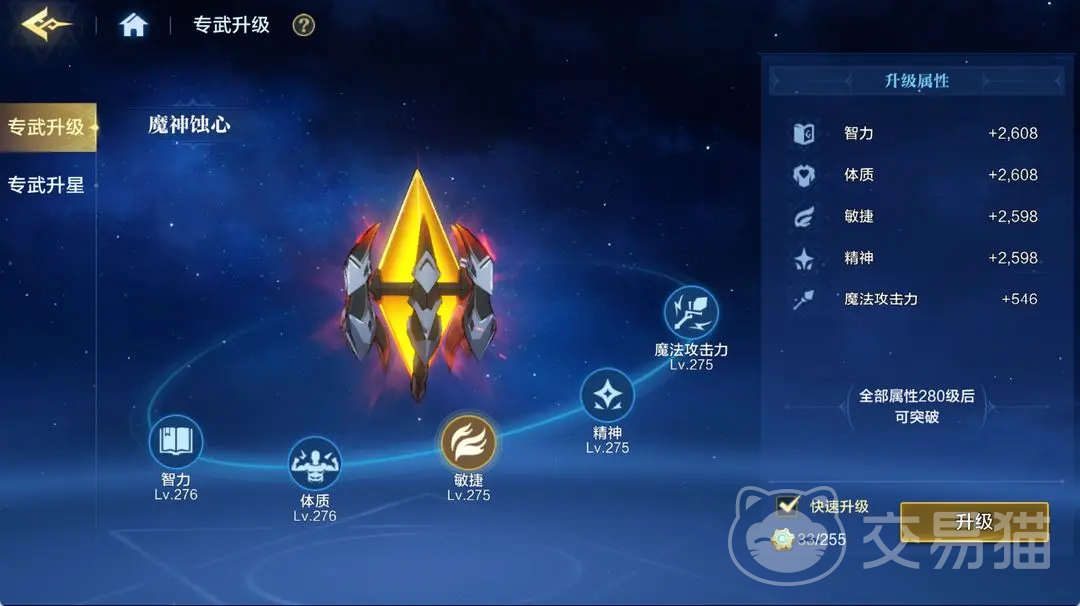 专武升级采用线性成长模型:使用【专武升级零件】提升等级,每达指定等级将触发等级上限,此时必须消耗【专武突破核心】完成突破,方可继续提升。升级零件可通过资源补给、武器抽奖及友情兑换等常规途径稳定获取;突破核心则分布于职级兑换、赛事兑换及钻石商城三大渠道,且所有职业角色共享同一套专武等级与属性加成数据。
