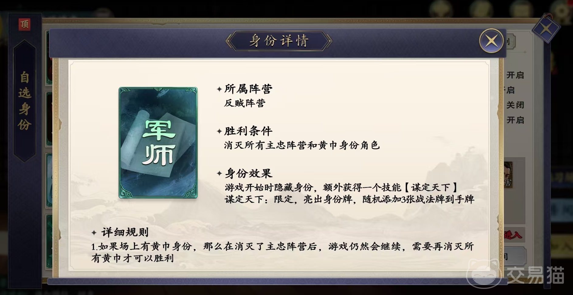 名将杀身份系统详解 名将杀主公忠臣反贼内奸角色特点与玩法解析