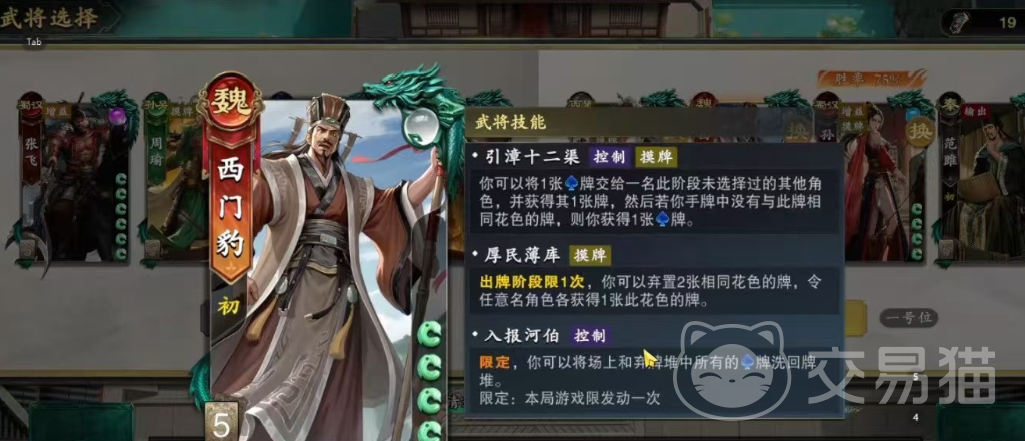 典型团队增益型辅助武将,“修筑金台”技能可在每轮对局起始阶段,将若干张我方手牌置于黄金台中进行强化处理,并启动卜卦机制;每位武将在单轮内仅可进行一次卜卦操作,确保资源分配公平性与策略深度。